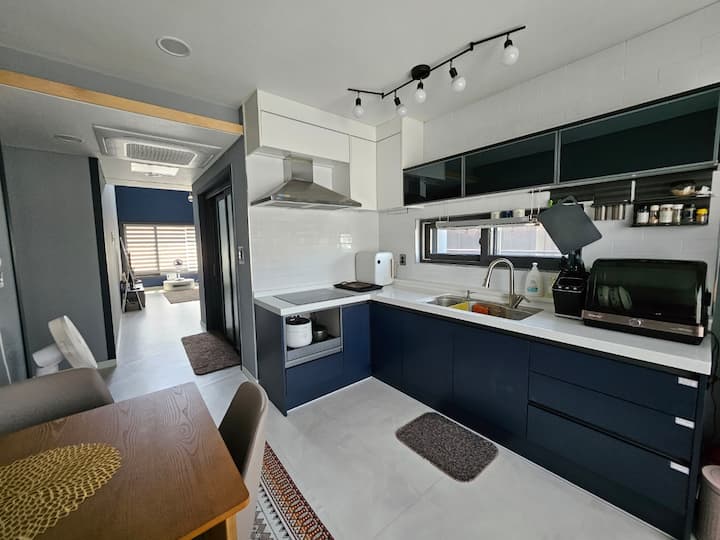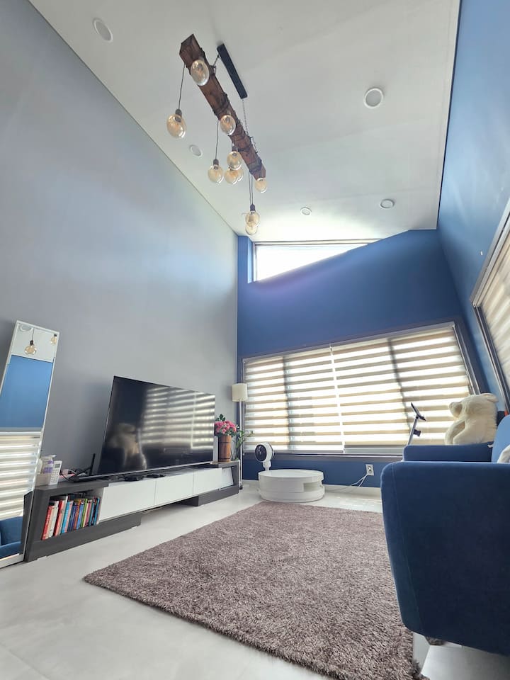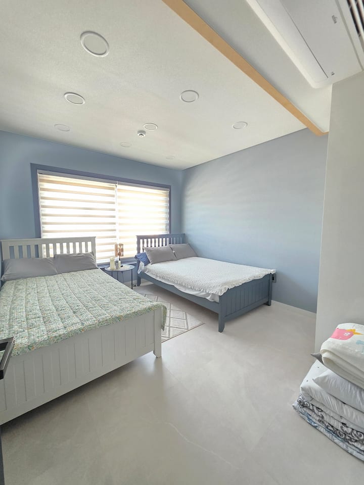 Ni mwendo wa dakika 10 kutoka Hifadhi ya Seodong na Hekalu la Jeonglim, umbali wa dakika 8 kutembea kwenda kwenye Kituo cha Basi cha Jeju mbele ya Hifadhi ya Seodong na Hekalu la Jeonglim. Ni malazi ya karibu sana na vivutio vikubwa vya utalii na pia ina vifaa vya watoto. Mapumziko mazuri na nguvu