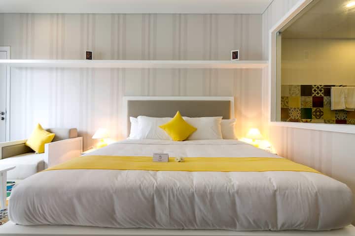 Aprili 2015, tulifungua vyumba vya Pulo vyenye Vyumba 20 vya Kipekee. Vyumba vyote vya kupangisha ni kuanzia mita za mraba 37 hadi mita za mraba 75, vina jiko dogo, vistawishi vya hoteli, televisheni ya kebo... Ghorofa ya chini ni Mgahawa na Eneo la Mapumziko lenye bustani ya kijani. Pia tuna baa ya juu ya paa ambayo itafunguliwa hivi karibuni mwishoni mwa Juni 2015. Kwa kuwa nyumba hizi zinafaa kwa wageni wa muda mfupi na wa muda mrefu, tunaweza kubadilika ili wageni wakae hapa usiku 1 au kadhaa au muda mrefu (kuanzia mwaka 1).