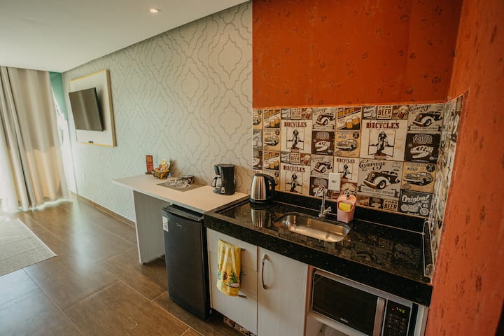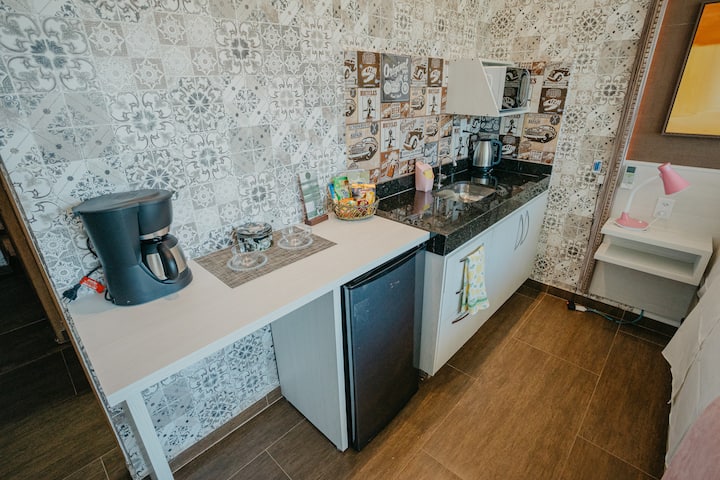Mbali na raha hizi ndogo, kuna starehe ya Flats iliyopambwa na kamili na bora ambayo tunafaa kutoa, vitanda vya ukubwa wa juu, starehe pamoja na, TV janja 60"na jiko dogo lililo na jiko, baa ndogo, mikrowevu na vifaa vya msingi vya vyombo vya nyumbani.
