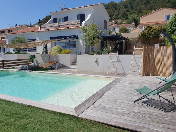 Villa Tinco l 'Almanarre dakika 5 kutoka ufukweni na kituo cha treni