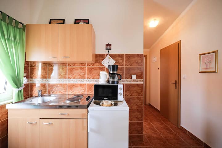 Fleti ya chumba kimoja cha kulala, maegesho ya kujitegemea, roshani karibu na bahari