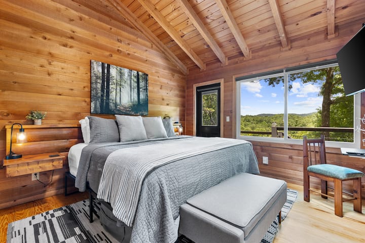 Nyumba ya mbao ya wanandoa wa Blue Ridge/beseni la maji moto/makochi ya moto/vingi