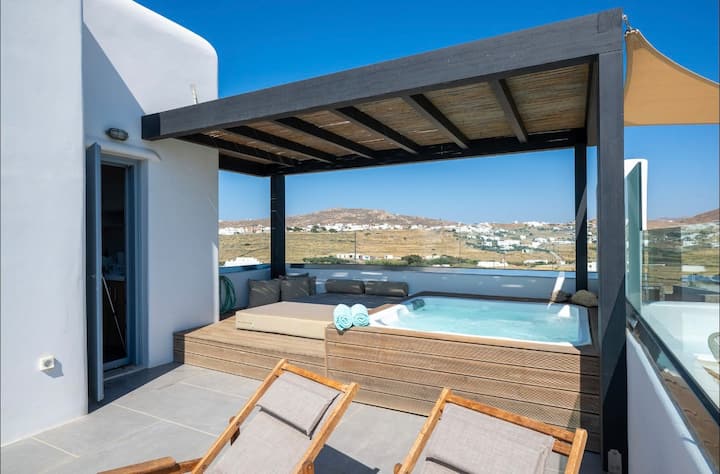Fleti iliyo na beseni la maji moto la nje na bwawa la pamoja
