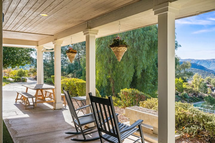 Luxury Alpine Estate - Escape to 3 serene acres in Alpine, CA. Inalala 21 katika vyumba 6 vya kulala kwenye mabafu 5.5. Vipengele ni pamoja na bwawa la maji ya chumvi (kupasha joto hiari), beseni la maji moto la mwaka mzima, sauna, chumba cha michezo, uwanja wa tenisi/pickleball na jiko la vyakula. Furahia mandhari ya ndani ya cowboy, mandhari ya milima, na mazingira ya amani yanayofaa kwa kutazama nyota au mapumziko. Inapatikana kwa urahisi dakika 10 kutoka kwenye vistawishi vya eneo husika na dakika 30 kutoka kwenye vivutio vya San Diego. Inafaa kwa mikusanyiko ya familia au likizo za kupumzika.