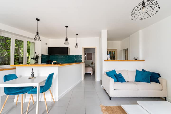 Fleti iliyo na bustani na maegesho katikati ya jiji