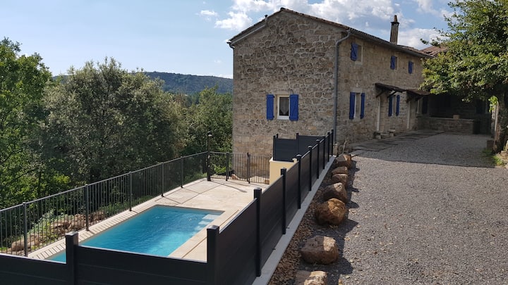 Gite basse Ardèche Piscine na makinga maji binafsi.