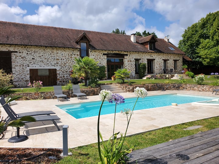 Nyumba kubwa ya mawe na bwawa la kuogelea lenye joto