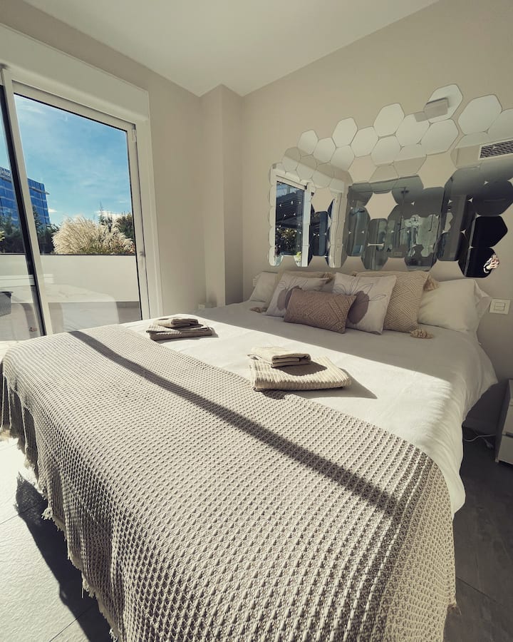 Kituo cha Marbella kilicho na bwawa na mtaro wa kujitegemea wa mita 140
