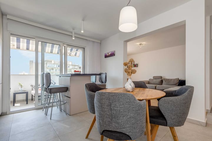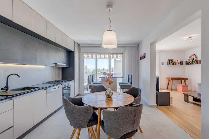 Modern 90 m2 apt. na balcony w. mtazamo wa bahari