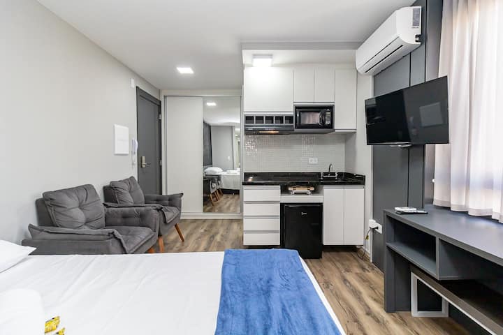 Studio iliyo na samani kamili inayotoa vistawishi vifuatavyo kwa wageni wake: