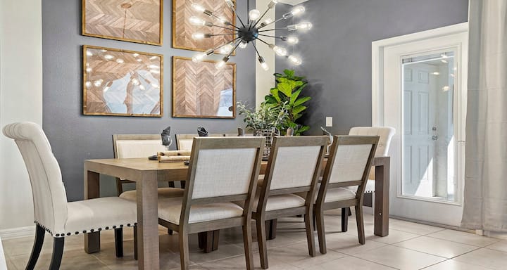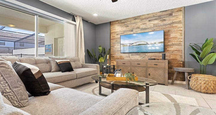 Ingia kwenye likizo ya ajabu katika Windsor hii ya kupendeza katika nyumba ya mjini ya Westside! Ikiwa na chumba chenye mandhari ya barafu kilicho na sanaa ya ukuta inayong 'aa, chumba cha watoto kilichohamasishwa na Marvel, na chumba kikuu chenye starehe chenye matofali maridadi, ni bora kwa familia. Pumzika katika bwawa lako la kujitegemea au ufurahie vistawishi vya risoti, ikiwemo mto mvivu na kituo cha mazoezi ya viungo. Nyumba hii iko chini ya maili 10 kutoka Disney na karibu na Universal na ununuzi, ni eneo la ndoto. Usikose, hifadhi ukaaji wako leo!