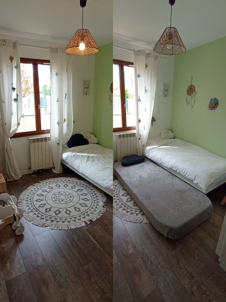 Wazazi wadogo wa mvulana mdogo, tunatoa nyumba yetu tulivu, kwenye malango ya Medoc.