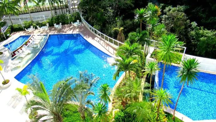 Kondo ya Reserva da Mata inachukuliwa kuwa Risoti bora zaidi kwenye Riviera ya São Lourenço, yenye mabwawa 2 ya joto karibu na Msitu wa Atlantiki, dimbwi 1 la ndani lenye njia 3 za nusu-Olympic, uwanja wa soka kwa watoto, uwanja wa michezo mingi, uwanja wa michezo, uwanja wa squash, nafasi ya wanawake, hairdresser, manicure, mazoezi ya mwili yenye vifaa vya kutosha, sinema, maktaba ya kuchezea, chumba cha sherehe, chumba cha mchezo, nafasi ya vijana, uwanja wa michezo, huduma ya pwani na SPA na jacuzzis 2, saunas 2, bwawa la nje lenye joto na massage na vyumba vya kupumzika. Kondo pia hutoa huduma bora na nzuri ya pwani, na mwavuli wa jua na viti vilivyowekwa na tayari kwa matumizi wakati wa kuwasili pwani.