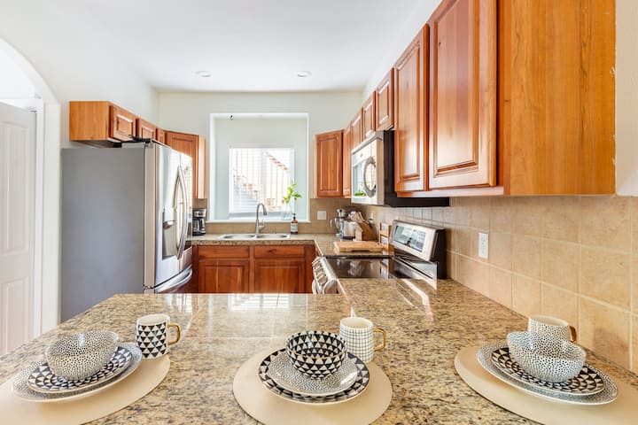 Beseni la maji moto, sitaha, nyumba 2 3patios zilizozungushiwa uzio kwa urahisi