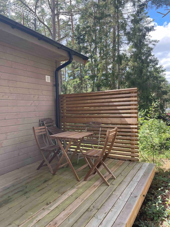 Furahia bahari mwaka mzima. Nyumba ya mbao kwenye kiwanja cha asili.