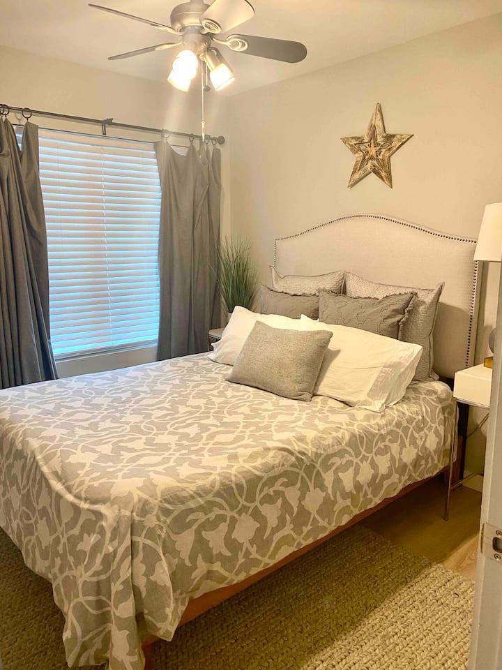 Kitanda cha Malkia cha Nyumba Iliyo na Mvuto wa Zen chenye Bafu la Kujitegemea