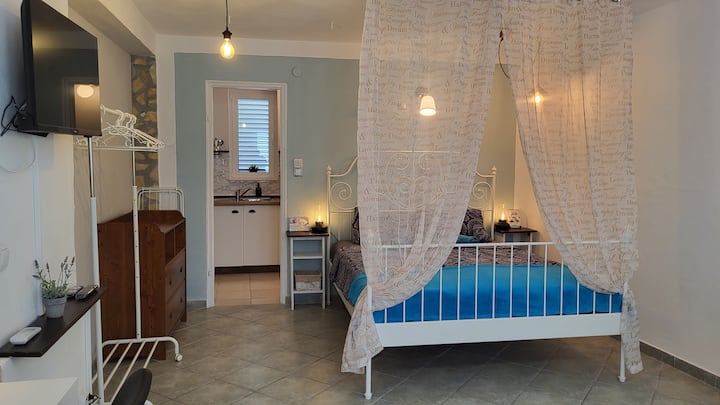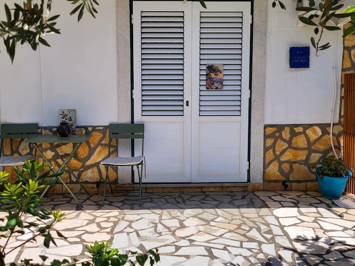 Studio yenye mtaro na mzeituni, ufukweni dakika 5