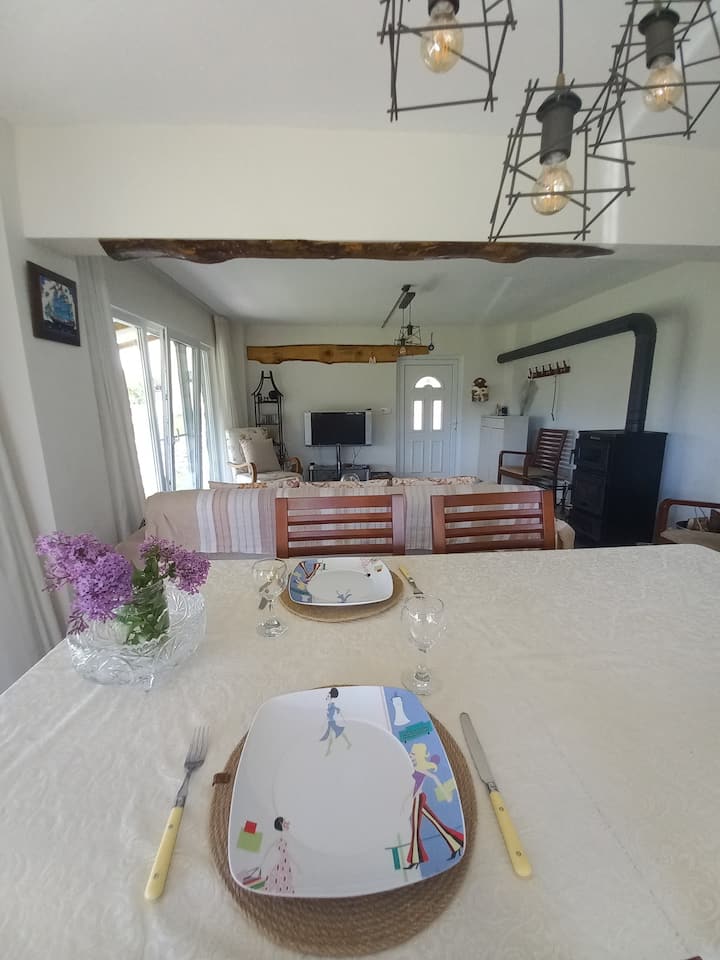 Tuna nyumba 2 katika bustani yetu ya m2 1,300. Tunakaa katika nyumba moja, nyingine ni nyumba iliyo na mlango tofauti kwenye sakafu ya bustani, tunatoa matumizi ya wageni wetu. Milango ni tofauti.