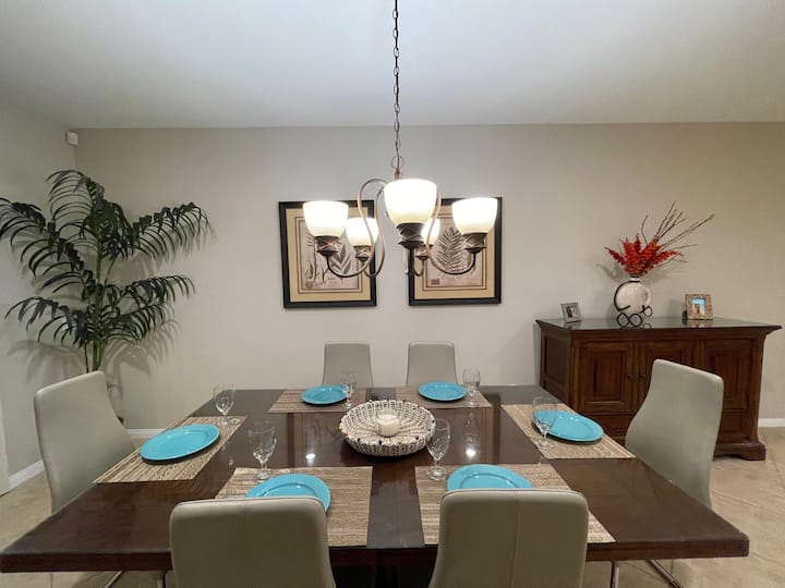 Sahau wasiwasi wako katika sehemu hii yenye nafasi kubwa na tulivu. Nyumba mpya iliyoorodheshwa katika jumuiya inayotafutwa ya Terra Lago. Nyumba hii nzuri yenye nafasi kubwa ina zaidi ya 2100sqft ya sehemu ya kuishi iliyo wazi, yenye vyumba 4 vya kulala na mabafu 2 ya kukukaribisha wewe na wageni wako. Nyumba ya kupumzika sana iliyo na bwawa/spa ya kujitegemea na eneo dogo la gofu. Tumia wakati mzuri na familia yako na marafiki kwenye nyumba hii iliyo na samani kamili na yenye vifaa kamili na kila kitu unachoweza kufikiria.