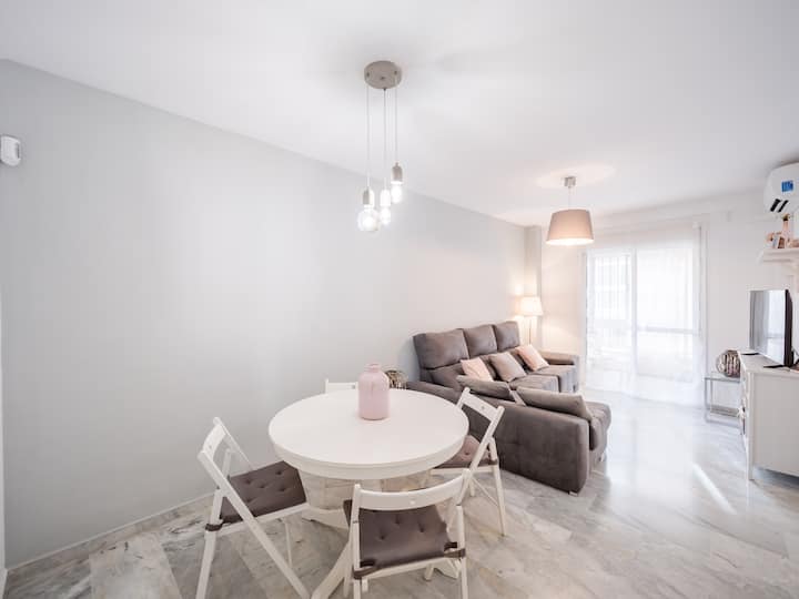 Ninapangisha fleti yangu yote wakati siko Malaga na kukaribisha wageni kwenye chumba changu cha wageni kilicho na chumba cha kulala cha kujitegemea nitakapokuwa hapo.