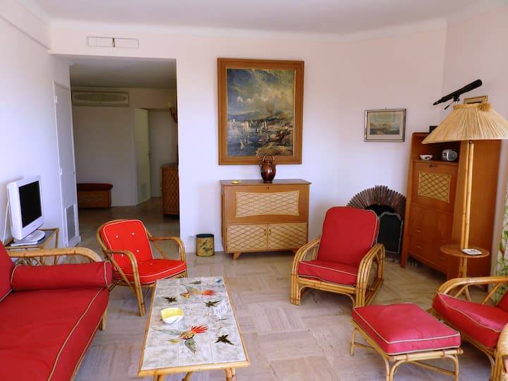 Fleti yetu ya Cannes ni fleti ya familia, iliyopatikana mwaka 1962 na shangazi yangu na ambayo sasa tunawajibika nayo! Tuliirejesha kabisa wakati wa kuweka samani zake za kipindi, sasa ni za zamani!