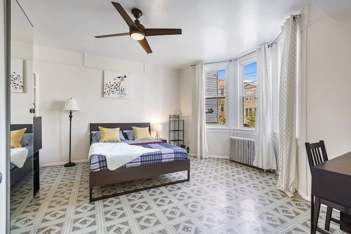 160 "1F" Bright room minutes to Hoboken/NYC/WIFI