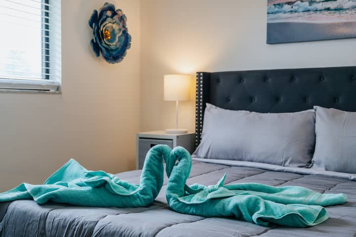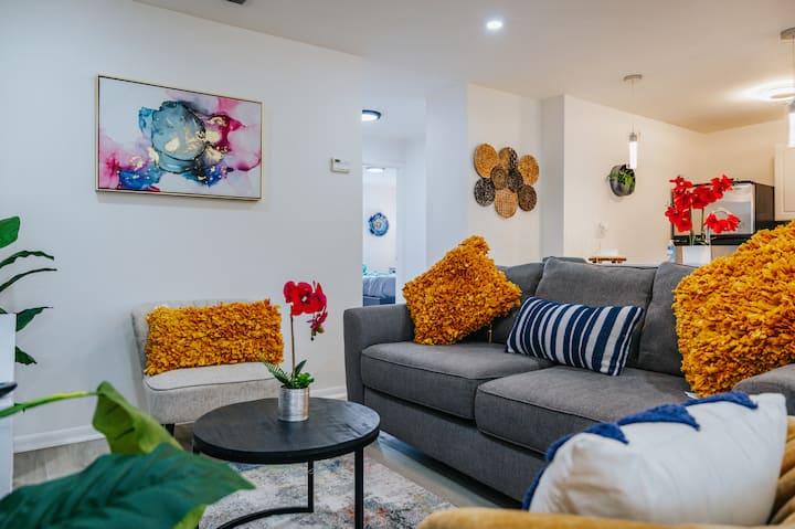 Fleti ya Kisasa yenye Ukumbi Karibu na Ufukwe