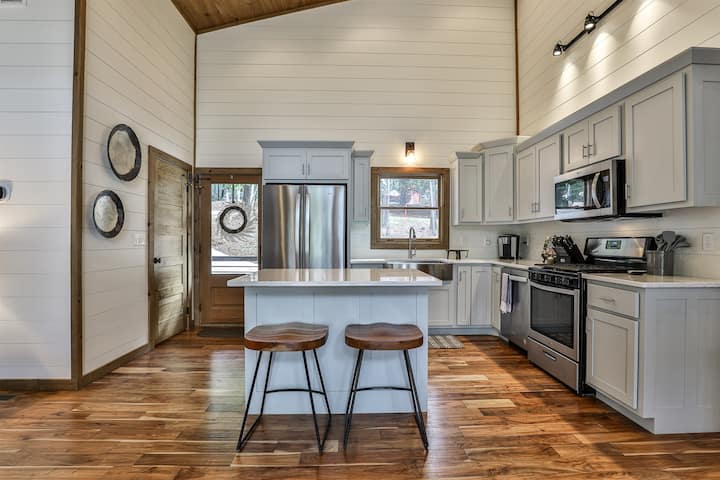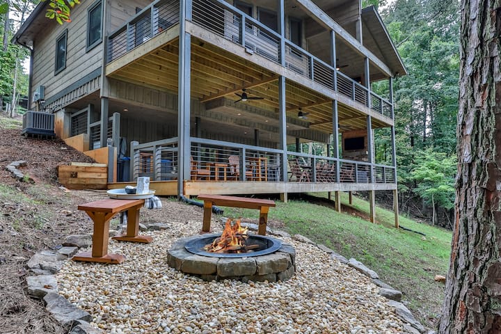 Karibu kwenye The Back Porch, nyumba ya mbao ya kisasa katika Risoti ya Mto Coosawattee ya Ellijay. Furahia ukumbi 2 mkubwa wa mandhari unaofaa kwa ajili ya kupumzika au kuburudisha, beseni la maji moto, jiko la gesi, ndani na nje ya meko, baa ya maji ya BYOB, televisheni mahiri na hata sehemu mahususi ya kazi. Sambaza na ulale kwa starehe ukiwa na vitanda 5, mabafu 3, jiko lenye mahitaji yote ya kupikia na kuchoma! Iko katikati ya Ellijay na dakika 30 kutoka DT Blue Ridge, tuna utaalamu katika mapumziko ya familia, wanandoa na makundi madogo!