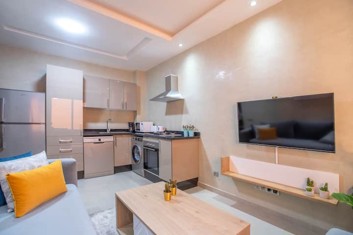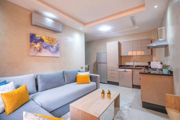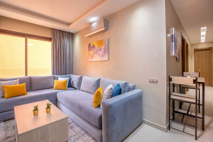 Kondo ya vyumba 2 huko Marrakech | Bwawa na Maegesho