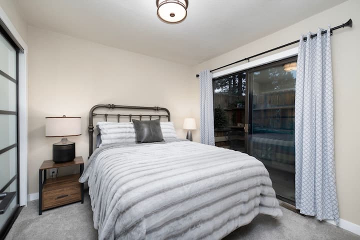 Unakaribia kufurahia nyumba ya mapumziko ya GENI, YENYE STAREHE YA VIWANGO VITATU! Ingia kupitia mlango wa mbele - vua viatu vyako, pumzika kwenye kochi laini na ujivinjari mbele ya meko ya ndani ya kuni, televisheni ya skrini kubwa ya Smart TV, au changanya kinywaji katika jiko la karibu la sakafu wazi.