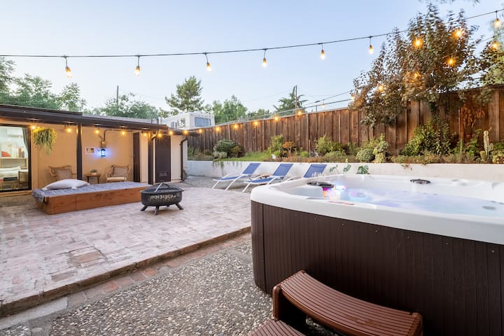 Likizo ya kujitegemea: Beseni la maji moto, BBQ/shimo la moto, Mionekano ya Jiji