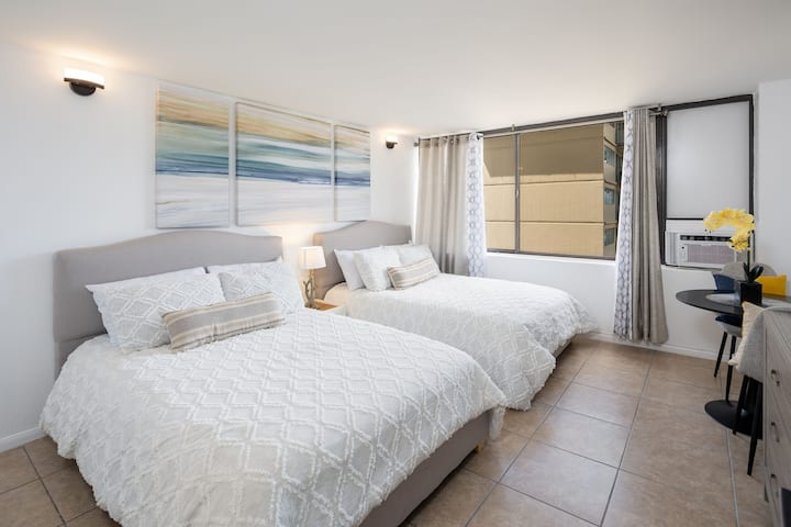* Ukarabati Mpya * Kondo ya Waikiki Vitanda 2 Kamili