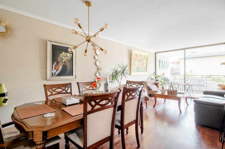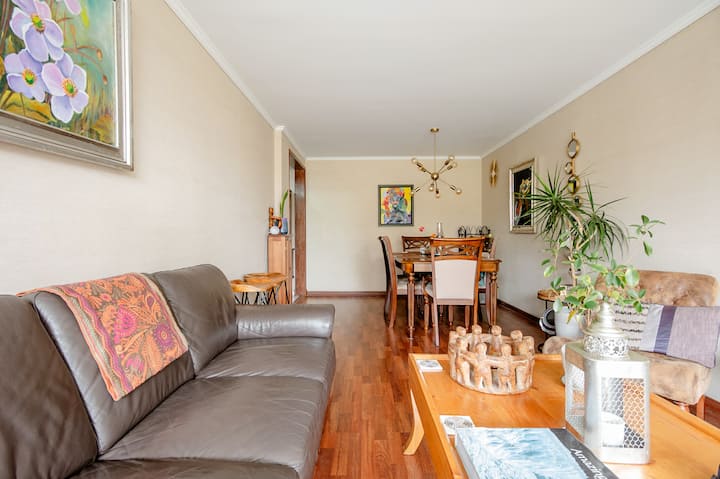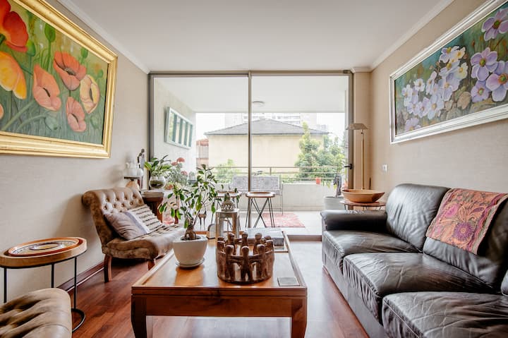 Habari. Karibu nyumbani kwangu. Muunganisho kamili. Subway na kituo cha basi kilicho umbali wa kutembea kutoka ghorofa yangu kubwa; ikiwa na bafu 2, sebule, chumba cha kulia, mtaro wa 23 M2, karibu na Uwanja wa Taifa, Gastronomy Plaza Ñuñoa kamili, Baa, Mikahawa, Sinema, Kafe, Aiskrimu, Ukumbi wa Maonyesho, Plaza yenye michezo kwa watoto, Taasisi za Benki, Usajili wa Raia, Maduka Makubwa.