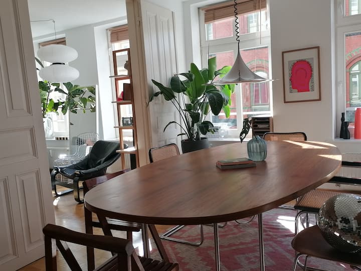 Fleti yangu mwenyewe iko katika moja ya wilaya za kuvutia zaidi na za kuishi za Hamburg, Schanze. Ina sqm 67, imekatwa vizuri na imewekewa samani. Kwa safari kamili ya jiji au ziara ya haki ya biashara, iko kwa urahisi sana, wakati mwingine unaweza pia kufikia kila kitu kwa miguu kutoka hapa. Chumba cha kulala kiko kimya nyuma ingawa fleti ni tulivu sana kwa ujumla.