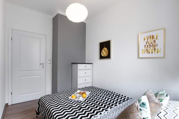 Kando ya kubuni nzuri na vifaa vya kisasa, ghorofa iko katikati ya Warsaw, kutoka ambapo unaweza kufikia vivutio muhimu zaidi ya mji mkuu katika dakika chache.