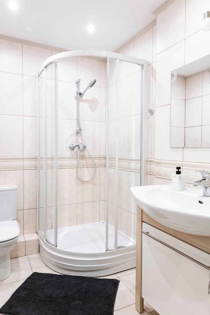 Kando ya kubuni nzuri na vifaa vya kisasa, ghorofa iko katikati ya Warsaw, kutoka ambapo unaweza kufikia vivutio muhimu zaidi ya mji mkuu katika dakika chache.