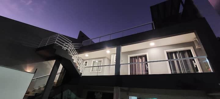 Pousada Suites do Cabo, katikati ya Arraial. Dakika 5 kutoka pwani ya Anjos, kutoka ambapo safari za mashua na shughuli nyingine huondoka. Matandiko kamili, taulo, baa ya nje. Huduma tofauti. Hatuna mapokezi, tafadhali wasiliana nasi ili kukujulisha wakati wa kuwasili.