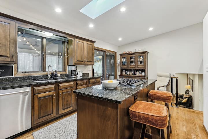 Furahia ukaaji wa kundi lako lote @ nyumba hii yenye starehe. Sasisho za kisasa w/mahiri + hisia za sanaa. Kukiwa na sebule nyingi, ni bora kwa makundi makubwa. Mizigo ya faragha na chumba cha kuenea. Changamkia filamu kwenye televisheni ya "60" katika ngazi ya chini au mwenyeji katika sebule kubwa rasmi karibu na sehemu ya kulia chakula na dari za vaulted. Nje ina ukumbi wa ua wenye nafasi w/skrini uliowekwa katika kitongoji tulivu karibu na bustani, iliyo umbali wa < dakika 20 kwa gari kutoka kila kitu kwenye metro!
