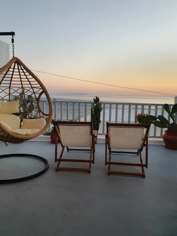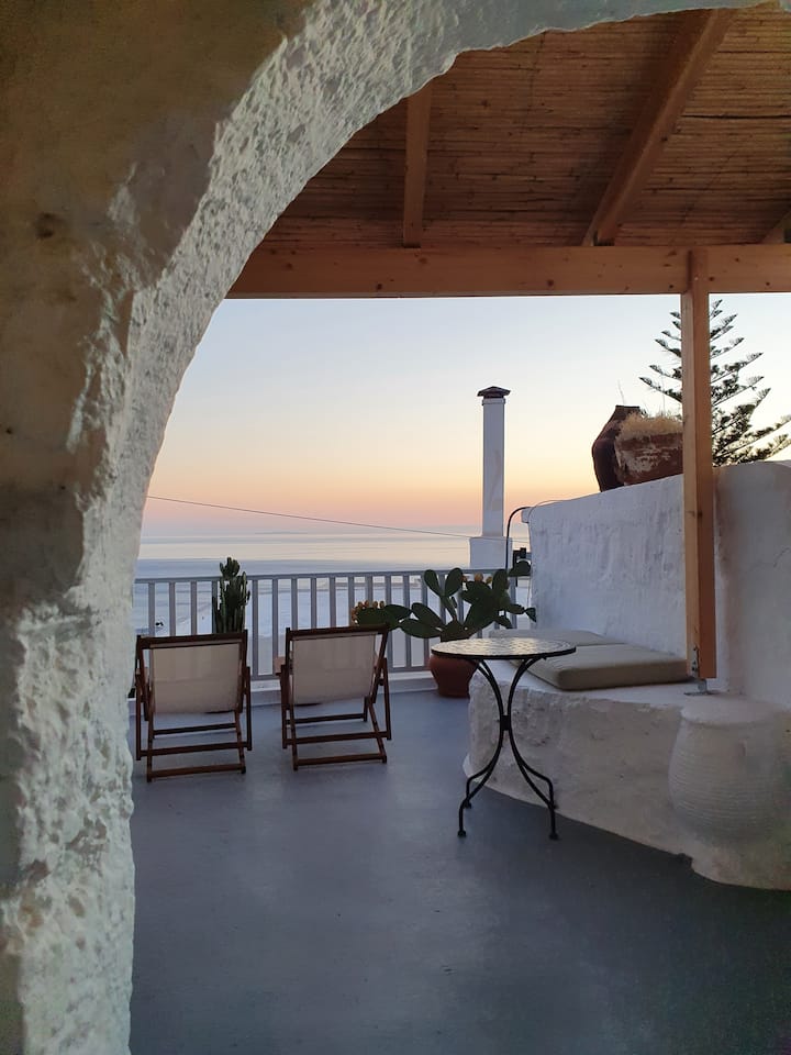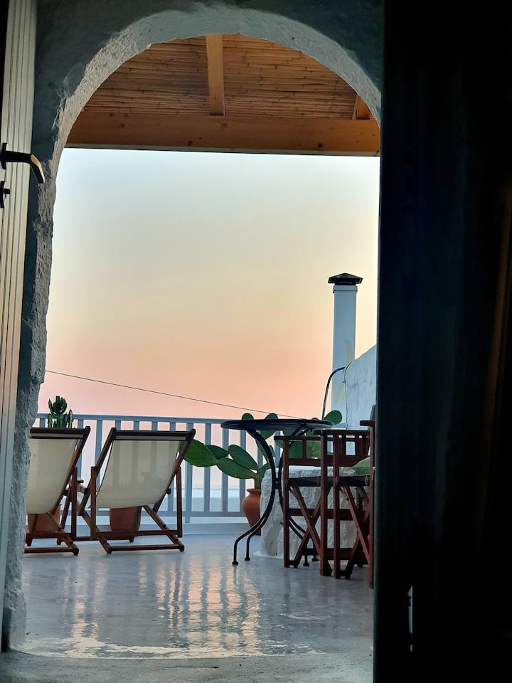 Nyumba ya jadi ya Kretani yenye mandhari ya bahari