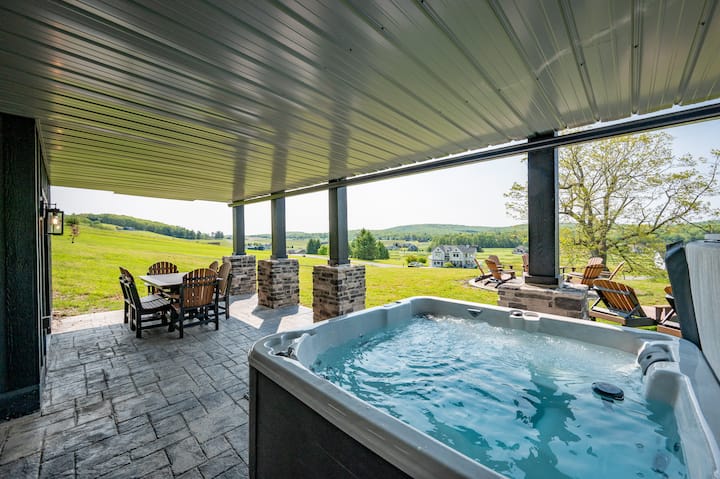Karibu kwenye The Crooked Oak Lodge, mapumziko yako bora ya kifahari yaliyo katikati ya uzuri wa kupendeza wa Deep Creek Lake. Nyumba hii ya kupendeza ni mahali pa starehe, mtindo na utulivu, inayotoa vistawishi visivyo na kifani na ufundi wa hali ya juu kila wakati. Ingia kwenye likizo hii kubwa na upokewe na ukuu ambao unachanganya kwa urahisi haiba ya kijijini na uzuri wa kisasa. Sehemu kubwa ya kuishi iliyo wazi ina dari za kanisa kuu zinazoinuka ambazo hufurika nyumba kwa mwanga wa asili, na kuunda mazingira mazuri na ya kuvutia. Jizamishe kwenye fanicha za kupangusa kando ya meko ya mawe kutoka sakafuni hadi darini, ambapo jioni hutumiwa vizuri kupumzika na wapendwa na marafiki zako wa manyoya, baada ya siku ya jasura. Furahia vikombe vya kahawa kwenye sitaha, vinywaji vya jioni kwenye beseni la maji moto linalovuma, au kukusanyika karibu na shimo la moto kwa ajili ya mazungumzo ya kando ya moto. Furahia mapumziko ya mwisho ukiwa na bwawa lako la ndani la kujitegemea, ambapo unaweza kuogelea kwa kuburudisha bila kujali hali ya hewa ya nje. Lakini anasa haiishii hapo - jishughulishe na ngazi ya chini na ugundue baa iliyofichika ya speakeasy iliyowekwa mbali na eneo la meza ya bwawa. Rudi nyuma kwa wakati unapofurahia kokteli zilizotengenezwa katika mazingira haya ya siri, bora kwa ajili ya burudani au kupumzika tu na marafiki. Zaidi ya mipaka ya mapumziko haya ya kipekee, ulimwengu wa jasura unasubiri. Iko dakika chache tu kutoka Ziwa Deep Creek, utakuwa na utajiri wa shughuli za nje mwaka mzima, kuanzia kuendesha mashua na uvuvi katika majira ya joto hadi kuteleza kwenye barafu na kuteleza kwenye theluji wakati wa majira ya baridi. Chunguza maili za njia za matembezi maridadi, tee kwenye viwanja vya gofu vilivyo karibu, au uzame tu katika utulivu wa mazingira ya asili. Iwe unatafuta mapumziko ya amani ya mlimani au jasura iliyojaa hatua, Crooked Oak Lodge inatoa mchanganyiko kamili wa anasa, starehe na urahisi kwa ajili ya likizo yako ijayo. Weka nafasi ya sehemu yako ya kukaa leo!!