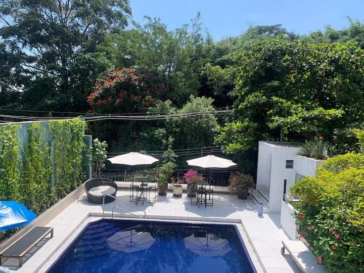 Bwawa la nje la kujitegemea - inapatikana mwaka mzima, inafunguliwa saa 24, paa la nyumba