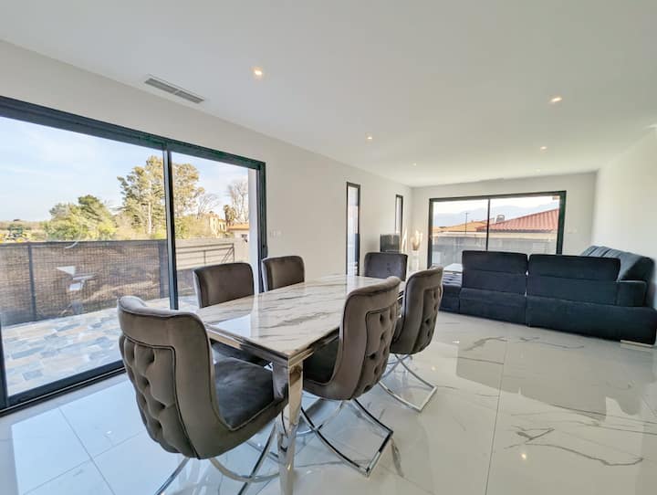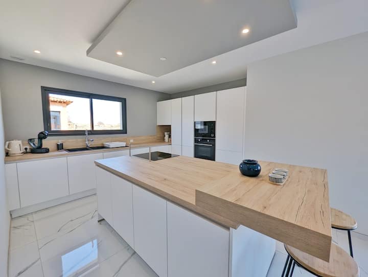 Tunatoa vila yetu iliyo kati ya bahari na mlima. Hii itakuruhusu kufurahia utajiri na ladha za eneo hilo. Tunafurahi kukukaribisha katika nyumba yetu. Tungependa pia kukujulisha kwamba tumetumia kumbukumbu za bawabu-66 ili kushughulikia kila kitu na kuhakikisha huduma bora.