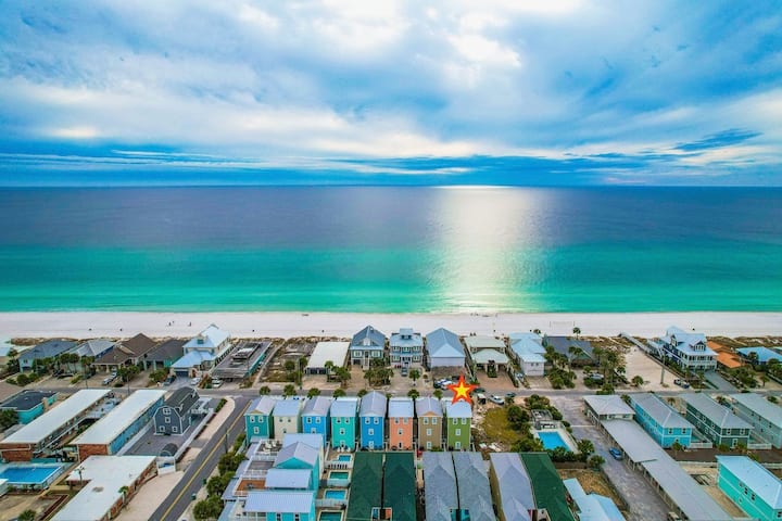 Zelie Beach Paradise House iko upande wa Mashariki wa Panama City Beach inawapa wageni eneo la vyumba 3 vya kulala w/ roshani, mabafu 3.5: Inalala watu 12.