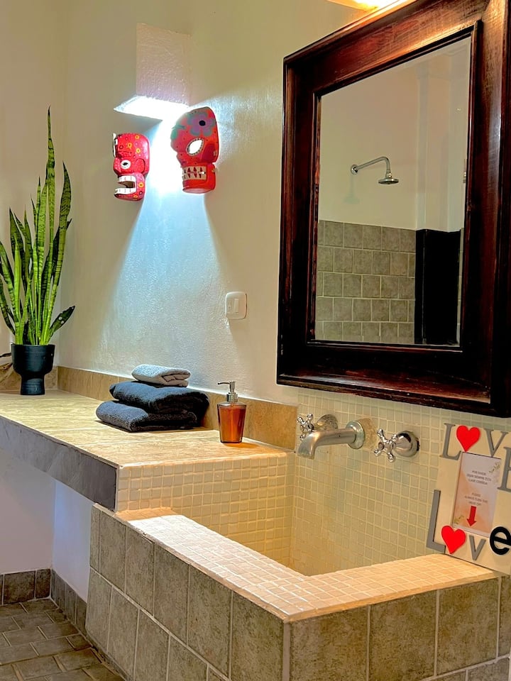Unaweza kuona; mabonde, nyani wastaarabu, armadillo, coati (kama raccoon), toucans, hummingbirds na kitu kingine chochote ambacho kinaishi katika msitu wa mvua wa lush ambao unazunguka nyumba yangu. Na nyumba hiyo iko mita 200 kutoka Playa Cocles, na maji ya joto ya Bahari ya Karibea.