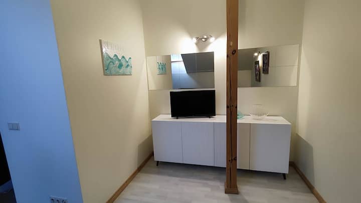 Fleti iko katika jengo maarufu na la kihistoria "MABAFU ya EMILIA RACENE". Ilijengwa mwaka 1916 na Emilia Ratsene kama sehemu ya kuogea iliyo na eneo zuri: ufukweni katika jiji la Jurmala.