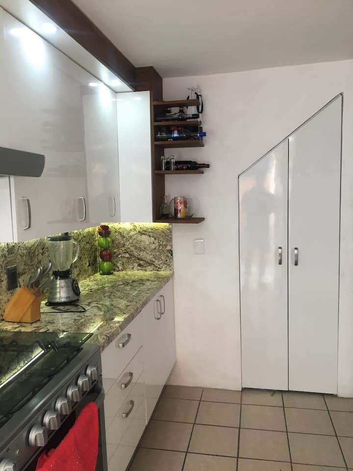 Kukaa karibu na ufukwe na kula chakula kuna kizuizi nusu ya ufukweni. Njoo ukae kizuizi cha 1 kutoka pwani nzuri zaidi huko punta de mita kwa kuteleza mawimbini na shughuli nzuri za bahari tunazo mapumziko ya karibu ya kuteleza mawimbini ni mwendo wa dakika 4