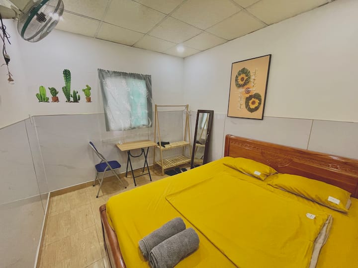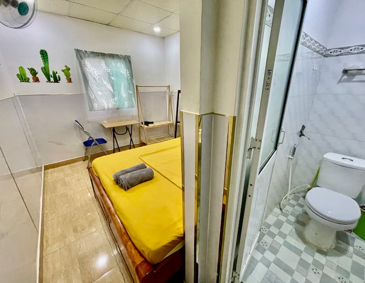 Asante kwa kuchagua kutumia huduma yangu. Inasemekana kwamba " unapata kile unacholipia" hata hivyo, utapata zaidi ya kile unacholipa unapoweka nafasi kwenye chumba chetu. Pamoja na usd10 mwenyeji anaweza kupokea, Je, unapata nini? Kitanda cha malkia cha kulala, chumba kilicho na choo ndani, karatasi ya choo, taulo. Chumba kinachofaa zaidi kiko karibu na kila kitu kama vile Bui Vien, Nguyen Hue mtaa wa kutembea, soko la Ben Kaenh, chakula karibu, maduka yanayofaa… eneo tulivu la kulala vizuri na hasa mwenyeji wa kirafiki kama mimi atakusaidia katika visa vyote.