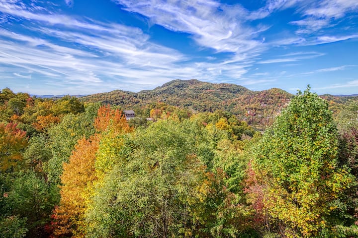 yenye ufikiaji wa beseni la maji moto. Karibu na Hifadhi ya Taifa ya Mlima Moshi na Pigeon Forge. Weka nafasi ya likizo yako leo! Ada ya kodi ya $ 75 na zaidi ya mnyama kipenzi kwa kila mnyama kipenzi. Wanyama vipenzi lazima wawe na crated wanapoachwa peke yao.