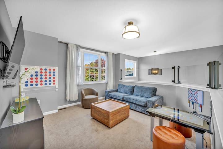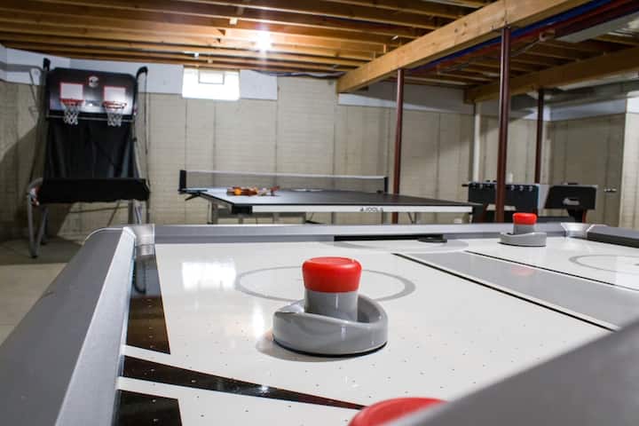 Sehemu ya Kukaa Yenye Nafasi Kubwa! Beseni la Kuogea la Moto, Chumba cha Michezo, Ua wa Nyumba Uliozungushiwa Ua