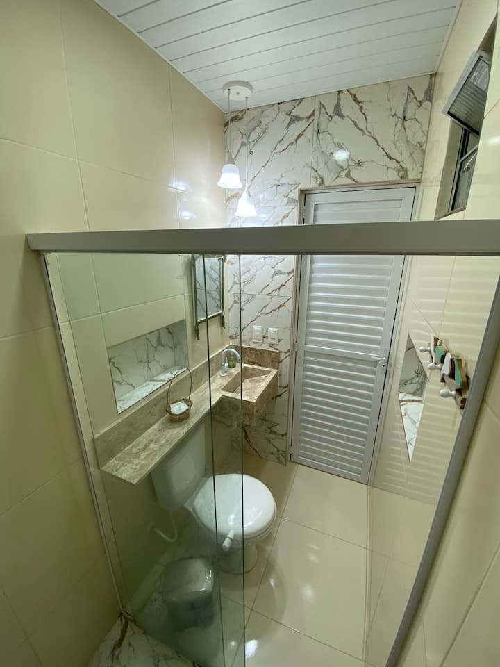 Sehemu hii ina bafu ambalo limeunganishwa na chumba chako.